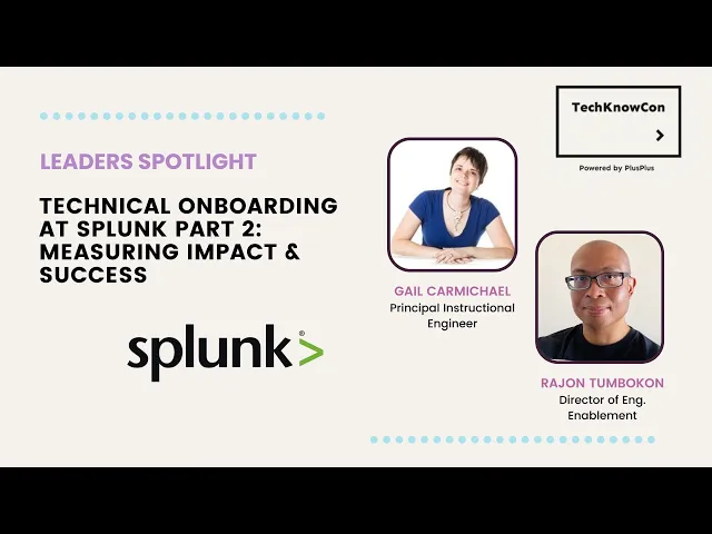 In the first session, they shared the context & goals of their technical onboarding program at Splunk. In this second session, Gail and Rajon will discussed the different ways they measure success and the business impact of technical onboarding programs at Splunk. They shared techniques of how you can define metrics specific to your organization and programs.