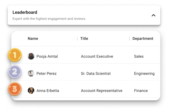 Get feedback from your experts and celebrate your top performers.