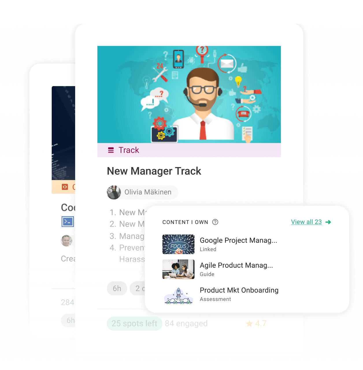 Curate any internal or external content into a structured and scheduled learning program in just a few clicks.