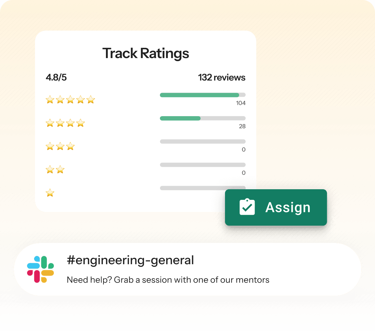 Dedicated Slack channels for assigned cohorts to ask questions and learn from each other.