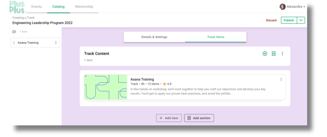 Tracks in PlusPlus are curated development journeys that seamlessly blend live events, static content, and peer-to-peer connections together to create immersive experiences for individuals and teams – and they just got way more powerful.