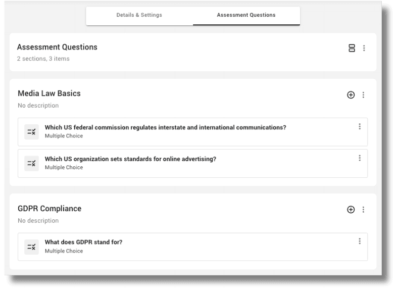 An Assessment in PlusPlus can be tied to a specific Event or piece of OnDemand Content, or can be a standalone item that is linked to from multiple sources. Each Assessment can have its own unique name, description, and cover art, enabling program managers to use their company’s unique brand identity and internal lingo to assess their people’s knowledge in real time.