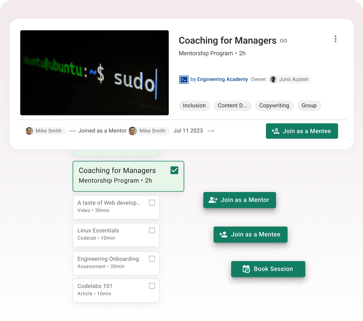 Offer multiple simultaneous mentorship programs with unique focus areas, such as leadership academy, sales training, and engineering.